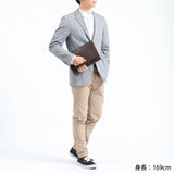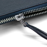 ビジネスシーンをラグジュアリーに彩る「Capitano」シリーズのクラッチバッグ。波をイメージした曲線的なスリーブと、丸みをもたせた底のデザインが優しく手に馴染み、持ち歩きやすさを向上させたデザインになっています。収納部はA5サイズがゆったりしまえて、長財布とスマホなど外出に必要な最低限の小物類が収まります。内装にはポケットとペンホルダーを備えた使いやすさも魅力です。また、ジップ引手を留めるベルトは意図しない開閉を防ぎ、さらにデザインのポイントにもなっています。素材には、波のような大らかさを普遍的で飽きのこない模様に落とし込んだ、オリジナルの型押しレザーを採用。しっかりとした質感の上質な牛革にシンプルな型を押すことで、重厚かつ優美な雰囲気を演出するとともに、傷も目立ちにくくなっています。