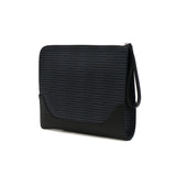 スマートな素材感と曲線的なフォルムが人気の『Capitano/キャピターノ』シリーズのクラッチバッグ。ビジネスシーンでクラッチバッグが活躍することも増えてきた今日この頃、こちらのクラッチバッグはオリジナルのプリント素材が目を引く、他にはないデザインに仕上がっています。収納部は、A4サイズの書類やスマートフォン、お財布など必須アイテムをコンパクトに持ち歩ける使い勝手の良いサイズ感。すっきりとした薄マチ仕様なのでブリーフバッグのバッグインバッグとしてもお使いいただけます。また、内部にはポケットも付いているため小分け管理もしやすい仕様となっています。メイン素材のコットンキャンバス地は綿織物の生産地として有名な大阪泉州で織り上げ、シルクスクリーンと呼ばれるプリント加工を施すことで独特の風合いをもった仕上がりとなっています。また、PVC加工、エンボス加工を施しているので、キズや汚れが目立ちにくいのもポイントです。