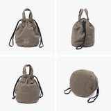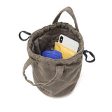 両サイドのコードを絞ると、ふわっと錐形に変わるドローストリングタイプの巾着バッグ"Sサイズ"。中綿入りのボディとハンドルがシルエットを保ち、持ちやすさも抜群です。軽量で丈夫なコットンキャンバス素材は、シンプルで落ち着いた質感。バッグとしてはもちろん、小物をまとめるポーチとしても活躍するアイテムです。