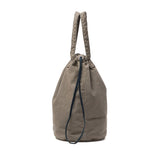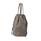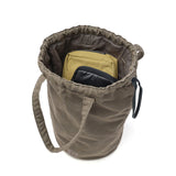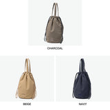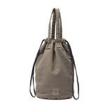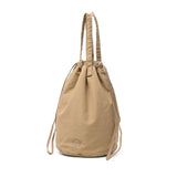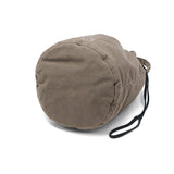 両サイドのコードを絞ると、ふわりと錐形に変わるドローストリングタイプの巾着バッグ"Mサイズ"。中綿入りのボディとハンドルがシルエットを保ちつつ、軽やかな持ち心地です。内側にはポケットとドリンクホルダーを備え、実用性も◎。ドローコードをそのまま肩に掛ければ、ラフなスタイルにもぴったり。マットな質感のコットンキャンバスが、日常にも旅先にも自然と馴染みます。