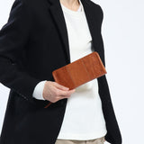 表情豊かなイタリアンレザーを使用した『BRETANGNA/ブリタニア』シリーズのラウンドファスナー長財布。使い込むほどに手に馴染む質感と、同色でまとめられたステッチ使いが魅力的な仕上がりです。内装は大きく開くササマチ仕様で、3層構造になっています。中に入れたお金やカードの視認性に優れ、出し入れもしやすいのがポイントで会計時をスムーズにサポートしてくれます。内部にはカードポケットを9ヵ所、領収書やレシートの管理に便利なポケットを3ヵ所装備。多くなりがちなカード類の管理がしやすく、お財布のシルエットをスマートにキープすることが可能です。素材にはイタリアンレザーを贅沢に使用。100%植物タンニンなめしに、手染めと洗い加工をし、シュリンクのような型押しを施した、表情豊かなレザーに仕上がっています。使い込むほどに光沢の増していく変化をお楽しみください。
