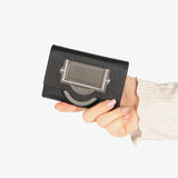 上質なカウレザーと洗練デザインが光るミニウォレット。折りたたんだお札とカード、コインがスマートに収納できる薄型設計で、ポケットや小さなバッグにもすっきり収まります。