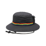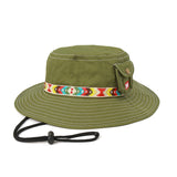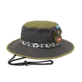アウトドア気分を盛り上げるキッズフェスハット。耐摩耗性に優れたコットンとナイロン素材で、快適なメッシュ裏地付き。UVカット仕様&あご紐付きでアクティブシーンも安心!チロリアンテープがかわいいアクセントに仕上がっています。