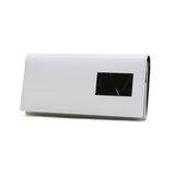 LANVIN en Bleuの楽しさを全面で表現した小物シリーズ『ディアブロ』の長財布。立体的な型押しロゴと金具プレートと繋がっているように見えるデザインが印象的。ロゴはさらに背面へと回り込み、存在感とデザイン性を際立たせています。