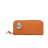 REDMOONオリジナルのネイティブアメリカンコンチョが特徴となっているラウンドファスナーのロングウォレット。ファスナーの引き手にもオリジナルのレザー製ファスナーが付属されており、こだわりのディテールを備えています。内部にはファスナー式の小銭入れや紙幣やレシートなども数多く収納できるスペースを設けており、とても使いやすくデザインされたロングウォレットに仕上がっています。
