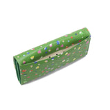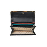 絵筆で“てんてん”と描いたようなドット柄が印象的なシリーズ。よく見ると猫顔に見えてくるシルエットと、愛らしい金具がポイントです。こちらは、ササマチタイプで中身が見やすい長財布。背面にはアクセスしやすいオープンポケットを備え、使い勝手にも優れています。
