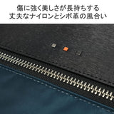本体素材には、高い耐久性を兼ね備えたナイロン糸「東レミラコスモ」を採用。裏面にはPVC加工を施してボリューム感と防水性を高めています。東レミラコスモナイロン糸は世界最細クラスで、肌触りが非常に滑らかで、陰影のある上品な光沢が特徴。また、付属には傷が目立たず取り扱いに優れたエンボスレザーを使用した素材のコンビネーションをお楽しみください。