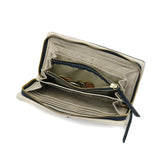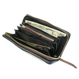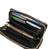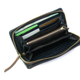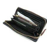 深みのあるレザーの風合いを楽しめる『FULL CHROME/フルクローム』シリーズのラウンドファスナー長財布。肌に馴染むようなしなやかな質感で心地よく手に取ることができ、なおかつツートーンカラーを楽しむことができるデザインに仕上がっています。ラウンドファスナータイプの開口部で蛇腹式のため大きく開閉でき、視認性に優れた使い勝手の良い収納部となっています。さらに、札入れは4ヶ所に設けられているので、金額別に紙幣を収納することが可能です。カートポケットはたっぷりと6面を使用して備わっているため種類別に管理がしやすく、増えがちなカード類がすっきりと収まります。また、小銭入れのジップ引手は細長く引きやすい仕様となっているので、スムーズに小銭入れを開けることができるのもポイントの一つです。素材には、フルクロームワックス加工を施し柔らかさとツヤ感のある表情に仕上げた牛革を採用。レザーのナチュラルなシワ感と、色ムラ感が魅力です。前面・背面に異なるカラーを使用したツートーンのデザインとなっているので、レザーのエイジングを存分にお楽しみいただけます。