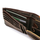 深みのあるレザーの風合いを楽しめる『FULL CHROME/フルクローム』シリーズの二つ折り財布。カジュアルに合わせやすく、大人の遊び心が詰まったツートーンデザインが魅力となっています。収納部に設置されているL字ファスナーの小銭入れは、中に仕切りが設けられており、種別収納もできる便利なつくり。後方に札入れ、内装には13カ所のカードポケットを装備。さらには3カ所のフリーポケットを設け、コンパクトながらしっかり収納できる充実の設計となっています。素材には、フルクロームワックス加工を施し柔らかさとツヤ感のある表情に仕上げた牛革を採用。レザーのナチュラルなシワ感と、色ムラ感が魅力です。前面・背面に異なるカラーを使用したツートーンのデザインとなっているので、レザーのエイジングを存分にお楽しみいただけます。