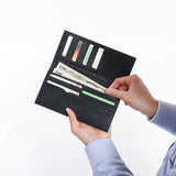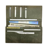 程よいハリ感と独特な温かみのあるレザーでつくられた長財布。収納機能に優れていながら、厚みを感じさせないスマートなフォルムが魅力的です。落ち着いたカラー展開で、高級感のある仕上がりとなっています。札入れはシンプルに1カ所にまとめられ、マチもあるのでお札の出し入れに便利です。また計13カ所に設けられたカードポケットは、種別ごとに管理しやすく使いたいカードがどこにあるのか見つけやすい設計です。素材は表面にサンドペーパーをかけ、上から真鍮ブラシで円をかくようにブラッシング加工されたイタリアンレザーを使用。ざらっとした表面と温かみのある革は、使い込むにつれて色が濃くなり、美しく光沢を帯びていくのが特徴です。